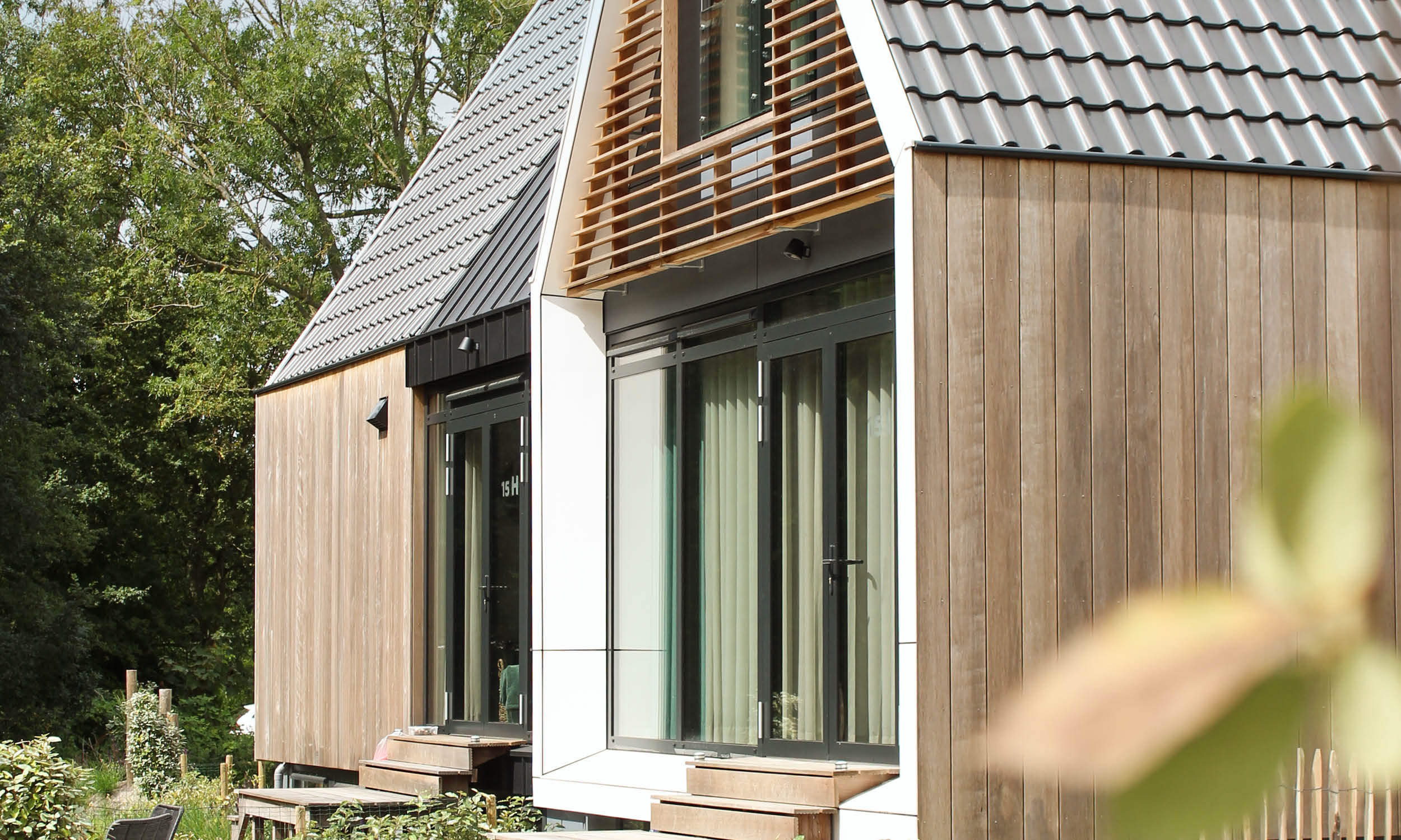 Daar kunnen we het alleen maar mee eens zijn. Buiten stralen de appartementen al een warm welkom uit met hun houten elementen, grote raampartijen en frisse witte kaders in de stoere zwarte dak- en gevelplaten. Je vraagt je alleen wel af: hoe passen hier 13 ruime 2-, 4- en 6-persoonsappartementen in? Daarvoor lijkt het complex veel te kleinschalig. “Er zijn ook souterrains in verwerkt”, verklaart Joost Pluijlaar van Bouwgroep Peters.